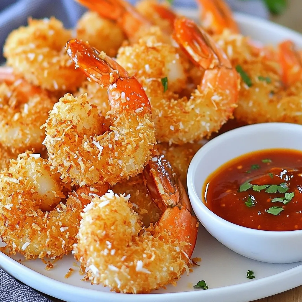 Deliciously crispy shrimp coated in coconut and Panko, perfect for an appetizer or snack.