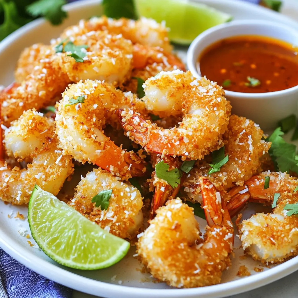 - 1 pound large shrimp, peeled and deveined - 1 cup unsweetened shredded coconut - 1 cup panko breadcrumbs - 1/2 cup all-purpose flour - 1 teaspoon garlic powder - 1 teaspoon paprika - Salt and freshly ground black pepper, to taste - 2 large eggs - Cooking spray for air frying When preparing air fryer coconut shrimp, you need a mix of fresh ingredients. The main star is shrimp. I always choose large shrimp for a nice bite. Peel and devein them for the best taste. Next, we use unsweetened shredded coconut. This gives a delightful crunch and sweet flavor. Panko breadcrumbs add an extra layer of crispiness. They are light and airy, perfect for air frying. For the dry mix, we have all-purpose flour, garlic powder, and paprika. The flour helps the coating stick. Garlic powder adds a savory kick, while paprika gives a warm color. Don't forget salt and black pepper. They enhance all the flavors. We also need eggs. They act as a binder for the coating. Cooking spray is key for crispiness in the air fryer. It helps the shrimp become golden brown and delicious. Gather these ingredients before you start. This way, cooking becomes a fun and smooth process. {{ingredient_image_2}} - Prepare the seasoned flour mixture: In a shallow dish, mix 1/2 cup of all-purpose flour, 1 teaspoon of garlic powder, 1 teaspoon of paprika, and some salt and black pepper. This adds flavor to the shrimp. - Beat the eggs in a separate bowl: In another shallow bowl, crack 2 large eggs. Whisk them until they are well mixed and a little frothy. This helps the coating stick to the shrimp. - Create the coconut coating: In a third shallow bowl, combine 1 cup of shredded coconut and 1 cup of panko breadcrumbs. Mix them well to form a uniform coating. This adds a crunchy texture to your shrimp. - Dredging in seasoned flour: Take one shrimp and dip it into the seasoned flour mixture. Make sure to shake off any extra flour. This step adds a base layer of flavor. - Egg dipping process: Next, dip the flour-coated shrimp into the beaten eggs. Let any extra egg drip back into the bowl. This makes the shrimp sticky for the final coating. - Rolling in coconut and panko mixture: Roll the shrimp in the coconut and panko mix. Press gently to ensure the coating sticks well. This gives the shrimp a tasty, crispy crust. - Preheat the air fryer: Set your air fryer to 400°F (200°C) and preheat it for about 5 minutes. This helps cook the shrimp evenly. - Arrange shrimp in the basket: Place the coated shrimp in a single layer in the air fryer basket. Make sure they do not touch. This helps them crisp up nicely. - Cooking time and flipping instructions: Lightly spray the shrimp with cooking spray. Air fry them for 8-10 minutes, flipping halfway through. They should be golden brown and cooked through. To make your shrimp crispy, spacing is key. When you place the shrimp in the air fryer, make sure they do not touch. This allows hot air to flow around each shrimp. If they overlap, they will steam instead of fry. Using cooking spray helps too. A light spray on each shrimp before cooking creates a golden crust. It enhances browning and crunchiness. Be careful not to drench them. Just a light mist will do. If you want to switch things up, try chicken or tofu instead of shrimp. Both options can still give you that crunchy texture. Just make sure to cut chicken into small pieces or use firm tofu. Adjust your cooking time based on what you choose. You can also change the seasoning. If you love spicy, add more paprika or a dash of cayenne. Feel free to use your favorite spices to make it your own. Keep an eye on your shrimp while they cook. They should be golden brown and firm to the touch. If they look pale or soft, they need more time. Cooking at 400°F (200°C) works well for most air fryers. However, some may cook faster than others. Adjust the time as needed for perfect results. Pro Tips Choose the Right Shrimp: Opt for large shrimp that are fresh or properly thawed to ensure a juicy and flavorful bite. Double Coating for Extra Crunch: For an even crunchier texture, consider dipping the shrimp in the egg mixture a second time before the final coconut coating. Avoid Overcrowding: Give each shrimp enough space in the air fryer to ensure they cook evenly and become crispy without steaming. Experiment with Flavors: Feel free to add spices like cayenne pepper or lime zest to the coconut mixture for an extra kick of flavor. {{image_4}} You can easily change the taste of your coconut shrimp. Adding spices makes a big difference. Try cayenne for heat or cumin for a warm flavor. A pinch goes a long way. You can also mix in garlic powder or onion powder for extra zest. When it comes to breadcrumbs, feel free to experiment. Regular breadcrumbs work well, but panko gives a crunchier texture. You could even try crushed cornflakes for a unique twist. Each option brings its own taste and crunch to the dish. Dipping sauces can make your shrimp even better. A sweet chili sauce pairs perfectly with coconut shrimp. You can make your own by mixing chili sauce with a bit of honey. If you want something tangy, mix Greek yogurt with lime juice and cilantro. This creamy dip adds a nice contrast. You might also enjoy a spicy mayo or a simple garlic aioli. Each sauce adds a fun flavor burst. Coconut shrimp isn't just for snacking. You can serve it in fun ways. Try making shrimp tacos with fresh toppings. Add slaw, avocado, and a drizzle of lime. You can also toss the shrimp in a salad. Use mixed greens, mango, and a light vinaigrette. For a pop of color, garnish with fresh herbs like cilantro or parsley. A squeeze of lime adds brightness too. These ideas make it easy to enjoy coconut shrimp in new ways. To keep your leftover coconut shrimp fresh, store them in an airtight container. Place a paper towel at the bottom to absorb moisture. This helps keep the shrimp crispy. Refrigerate them for up to three days. When ready to eat, reheat them in your air fryer for a few minutes. T
