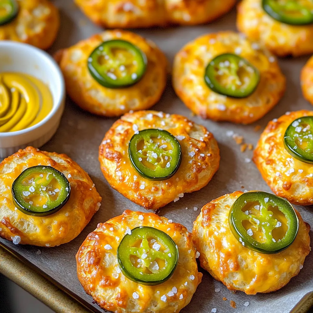 Shredded sharp cheddar cheese gives each bite a rich taste. Jalapeños add a spicy kick, and you can adjust the heat by removing seeds. Baking soda is key for boiling, creating that classic pretzel crust. Finally, coarse sea salt brings it all together with a salty crunch.