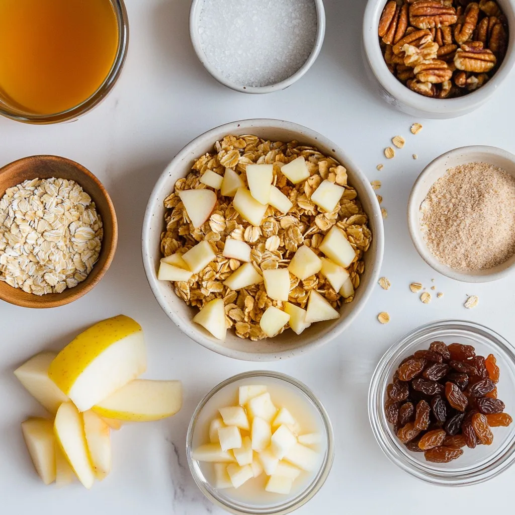 These main ingredients create a base that makes this oatmeal bake both tasty and healthy. The rolled oats give it a hearty texture. Diced apples add sweetness and moisture. Almond milk keeps it dairy-free, while maple syrup or honey enhances the flavor naturally.
