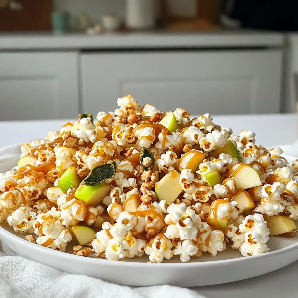 Always use fresh popcorn for the best results. Air-popped popcorn is light and airy. It holds caramel well. Unsalted butter gives a rich flavor. For a nutty taste, choose walnuts or pecans. They add a nice crunch and depth. Keep dried apples finely chopped. It helps mix well with popcorn. Ground cinnamon adds warmth and spice. Use a good quality for the best flavor.