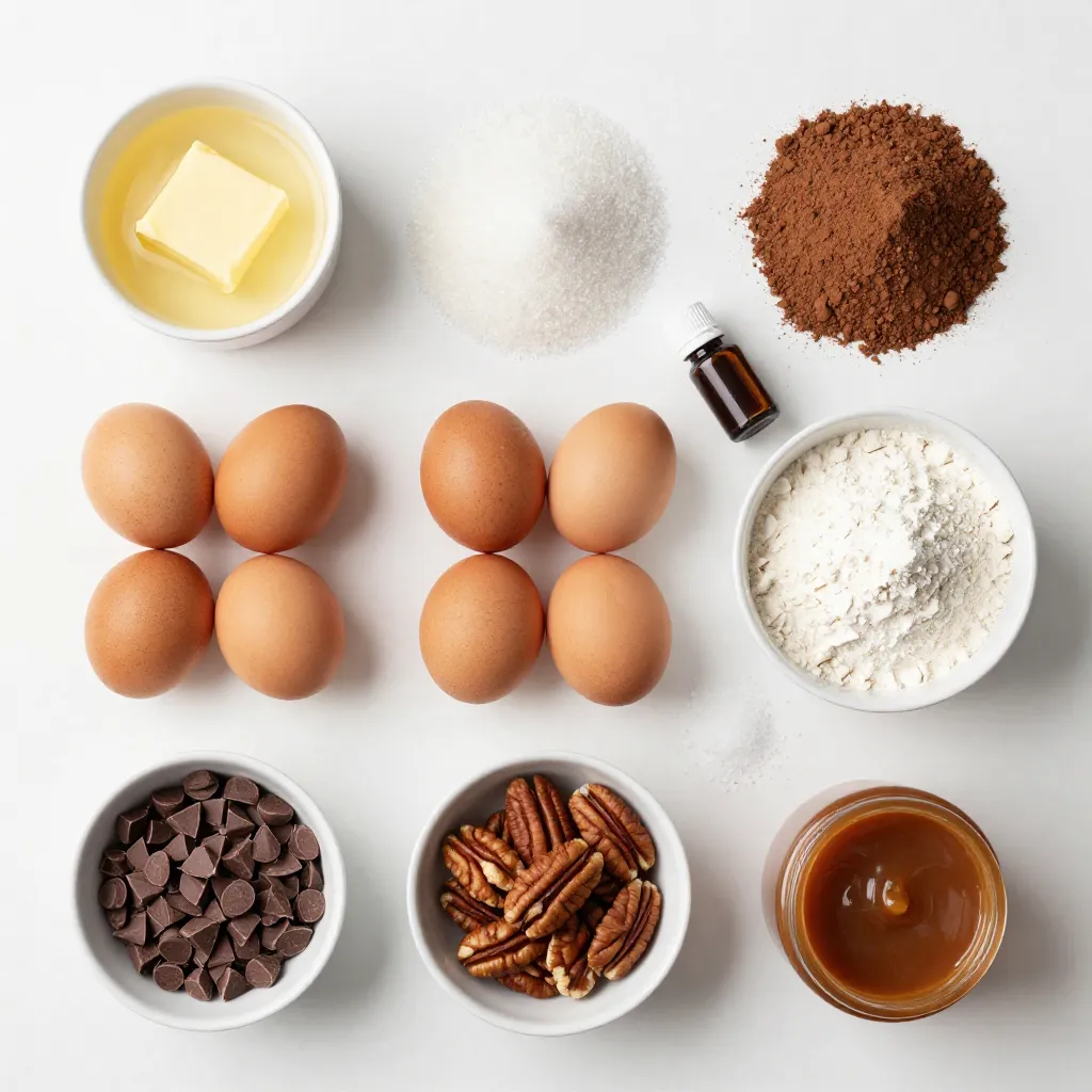 To make Caramel Pecan Turtle Brownies, you need these ingredients: