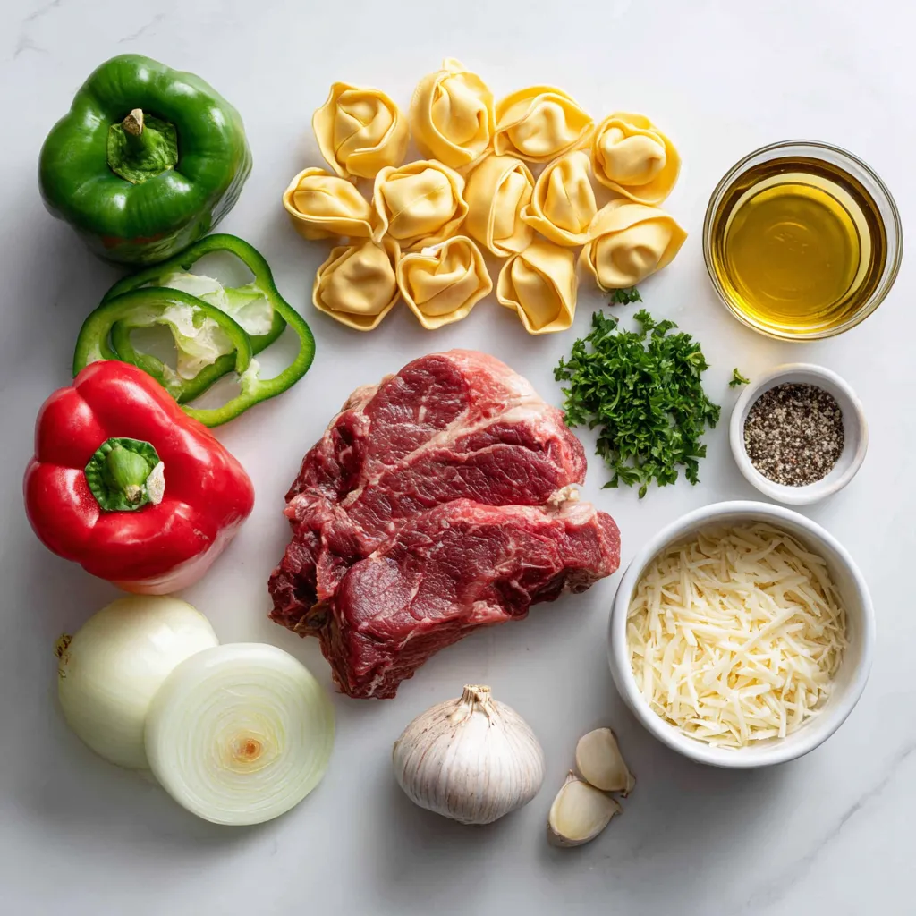 In this dish, the star is cheese tortellini. It adds a soft, cheesy bite. Ribeye steak brings a rich flavor. Choose a bell pepper based on your taste. Red peppers are sweet, while green brings a sharp flavor. The onion adds depth. Provolone cheese makes the sauce creamy and rich. Beef broth ties it all together, giving the dish a savory base.