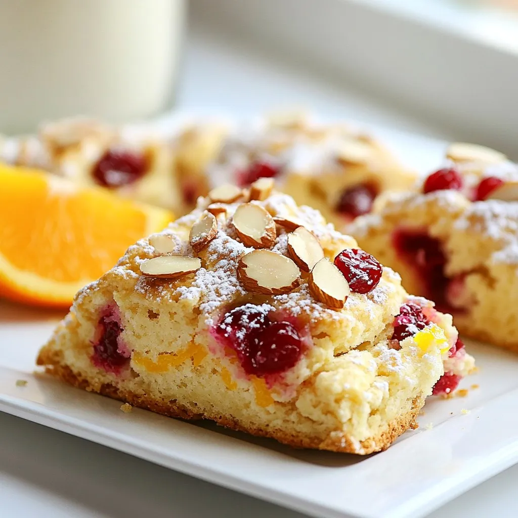 Delicious scones bursting with fresh cranberries and orange zest, perfect for breakfast or a snack.