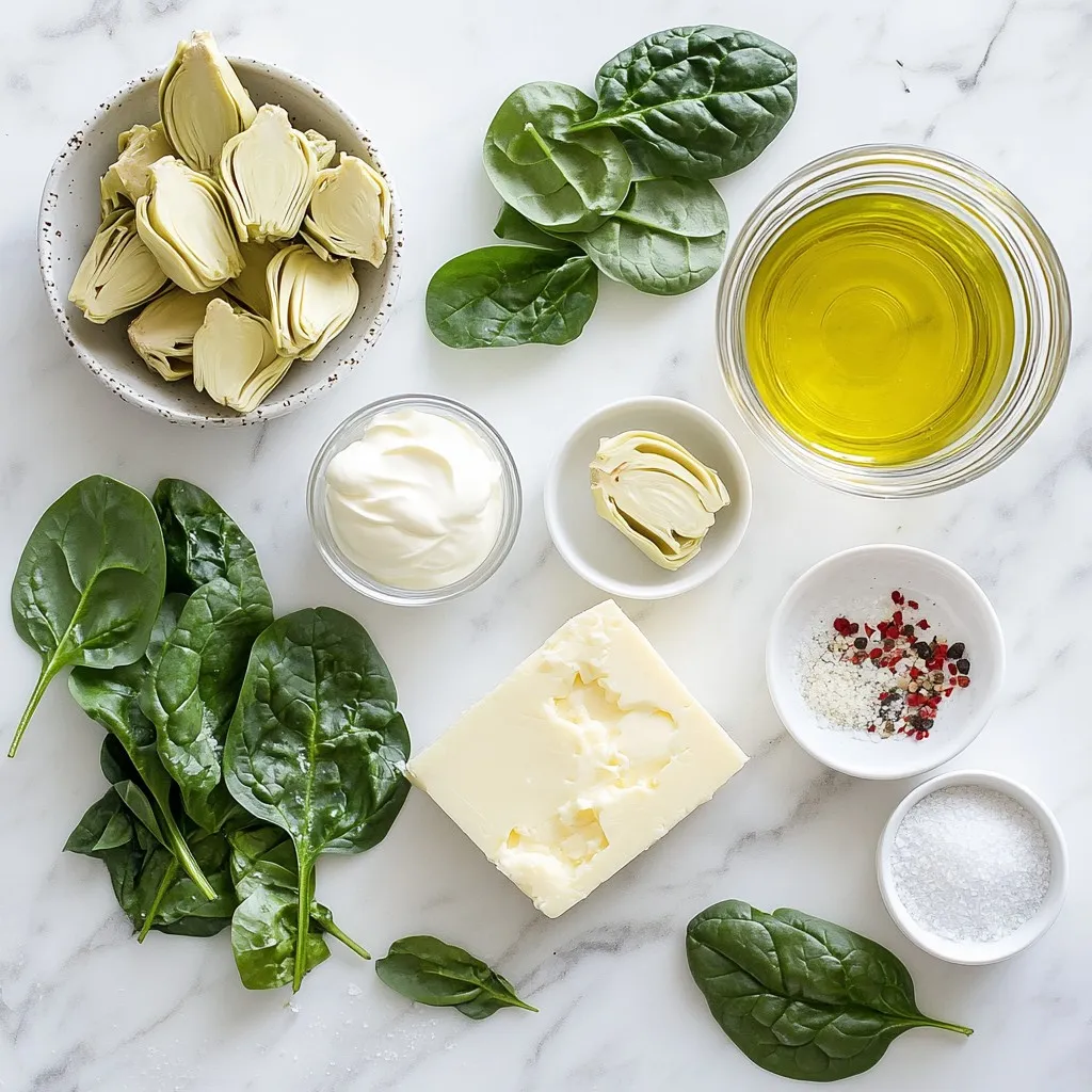 Next, grab some fresh produce. You need garlic, spinach, and artichoke hearts. The garlic adds flavor. The spinach gives a nice color and nutrition. The artichoke hearts bring a unique taste.