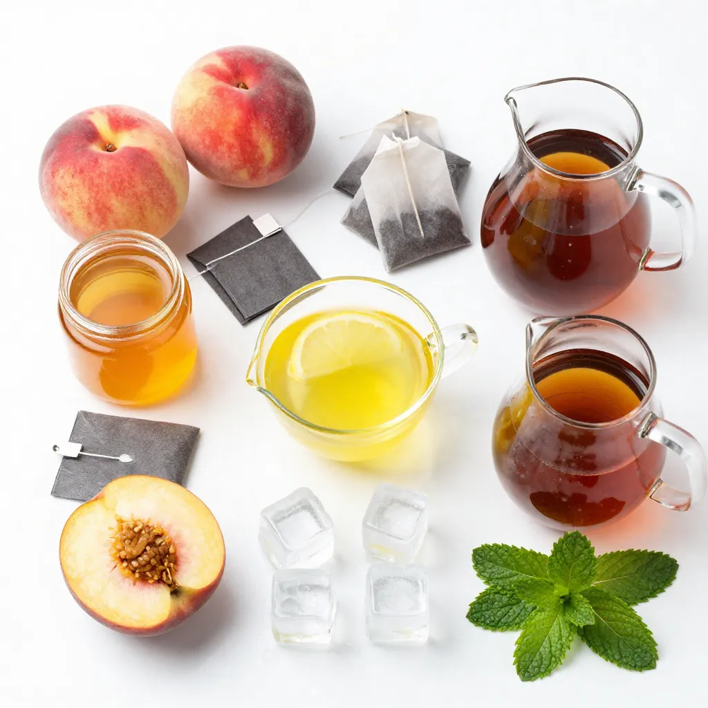 For this honey peach iced tea, the ingredients matter a lot. Each one adds its own flavor and charm. You start with the boiling water. This is key to making the tea strong and tasty.