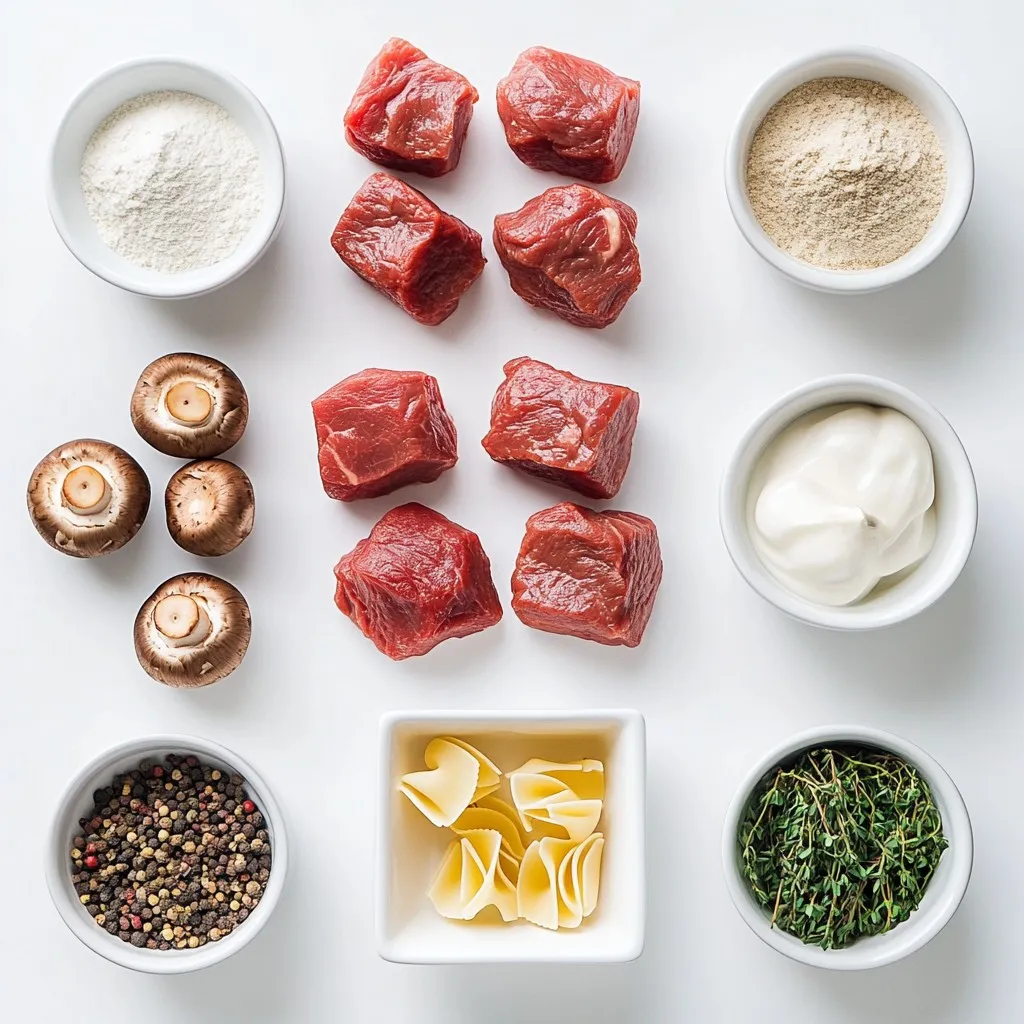 Spices like paprika and thyme elevate the taste. Salt and black pepper round it all out. For creaminess, sour cream or Greek yogurt works wonderfully. All-purpose flour thickens the sauce. Finally, egg noodles soak up the flavors, making each bite delightful.