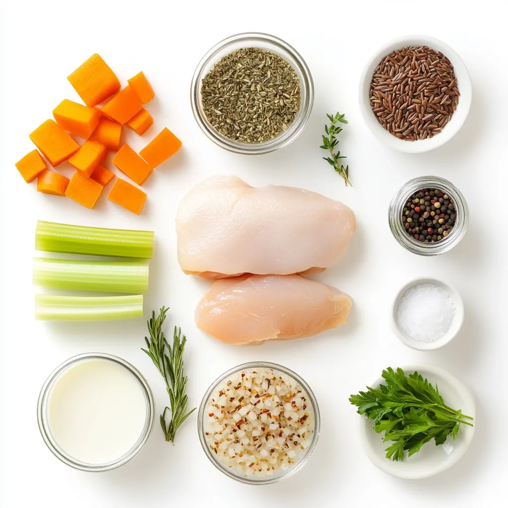 To make Instant Pot Chicken and Wild Rice Soup, you need a few key items. Here’s what you'll need: - 1 pound boneless, skinless chicken breasts - 1 cup wild rice, thoroughly rinsed and drained - 1 medium onion, finely diced - 3 cloves garlic, minced - 3 medium carrots, peeled and diced - 3 celery stalks, diced - 4 cups low-sodium chicken broth - 1 cup coconut milk (or heavy cream for a richer flavor) - 1 teaspoon dried thyme - 1 teaspoon dried rosemary - 1 teaspoon salt (adjust based on taste) - 1/2 teaspoon freshly ground black pepper - 2 tablespoons olive oil - Fresh parsley, chopped for garnish When selecting ingredients, look for fresh produce. Choose firm carrots and crisp celery. Select chicken that is pink and not slimy. For wild rice, pick a package with no broken grains. You can add extra flavor with some optional ingredients. Consider: - 1 cup of mushrooms, sliced - 1-2 cups of spinach or kale - A squeeze of lemon juice for brightness If you have dietary restrictions, substitute coconut milk with almond milk or oat milk. For a vegan option, replace chicken with chickpeas or tofu and use vegetable broth. This soup is not only tasty but also nutritious. Here’s a quick look at the nutritional breakdown per serving: - Calories: About 350 - Protein: 30g - Carbohydrates: 35g - Fat: 15g The soup is rich in vitamins from the veggies. Chicken adds protein, while wild rice gives fiber. This meal can help keep you full and satisfied. {{ingredient_image_2}} To start, set your Instant Pot to sauté mode. When it’s hot, pour in the olive oil. Add the diced onion, carrots, and celery. Stir these vegetables for about five minutes. You want them to soften and the onions to turn clear. This step builds the base flavor. Next, stir in the minced garlic. Keep stirring for another minute until you smell the garlic. Timing here is key. If you cook the garlic too long, it can burn and taste bitter. Now, season the chicken breasts with salt, black pepper, thyme, and rosemary. Place the chicken on top of the sautéed vegetables in the pot. Then, add the rinsed wild rice. Gently pour in the chicken broth, making sure to mix everything well. Close the lid securely and set the valve to sealing. Choose the manual (or pressure cook) setting. Cook on high pressure for 25 minutes. Once done, let the pressure release naturally for about ten minutes. After that, switch to a quick release for any leftover pressure. Carefully open the pot and use tongs to take out the chicken breasts. Shred the chicken into bite-sized pieces with two forks. Return the shredded chicken to the pot. Now it’s time to add the coconut milk or heavy cream. Pour it in and stir well. This makes the soup creamy and rich. Heat the soup on sauté mode for another five minutes, stirring gently to combine all flavors. Taste the soup and adjust the seasoning as needed. If you want more flavor, you may add salt or pepper. Serve it hot, and don’t forget to garnish with freshly chopped parsley for a fresh touch! One common mistake is not rinsing the wild rice. Always rinse it well to remove excess starch. This helps the rice cook more evenly and prevents it from becoming gummy. Another error is overcooking the chicken. The Instant Pot cooks quickly. If you let the chicken cook too long, it can become dry. Use a meat thermometer to check for doneness. Aim for 165°F for juicy chicken pieces. Using too much liquid can also affect the soup's texture. Follow the recipe closely. The balance of broth and coconut milk gives the soup a creamy, rich taste. For storing leftovers, let the soup cool completely first. Store it in an airtight container in the fridge. It will stay fresh for up to three days. If you want to freeze it, keep it in a freezer-safe container. It can last for up to three months. Just remember, the texture may change after freezing. To reheat, use a pot on medium heat. Stir often to prevent sticking. If it seems too thick, add a little water or broth. Heat until it reaches your desired temperature. To enhance your meal, serve the soup with crusty bread. A fresh side salad also pairs nicely. For a pop of color, top each bowl with freshly chopped parsley. You can add a squeeze of lemon for extra brightness. Feel free to serve it in rustic bowls for a cozy touch. A sprinkle of black pepper can add a nice finish, too. Enjoy your warm bowl of comfort! Pro Tips Use Fresh Herbs: Fresh thyme and rosemary can elevate the flavor of your soup compared to dried herbs. Consider adding some fresh herbs at the end of cooking for a burst of freshness. Adjust the Creaminess: If you prefer a lighter soup, use coconut milk. For a richer, more indulgent flavor, opt for heavy cream. You can even mix both for a perfect balance. Meal Prep Friendly: This soup stores well in the refrigerator for up to 4 days. Consider making a double batch to enjoy throughout the week or freeze portions for later. Perfect Pairing: Serve the soup with crusty bread or a side salad to make a complete meal. A sprinkle of lemon juice atop each bowl can also enhance the flavors beautifully. {{image_4}} To make a vegetarian version of this soup, simply swap out the chicken and broth. Use 1 pound of firm tofu as your main protein. Cut the tofu into cubes and sauté it with the vegetables. For the broth, use vegetable broth instead of chicken broth. This keeps the soup rich and tasty while making it meat-free. You can make this soup even more flavorful. Adding spices like cumin or paprika brings warmth. Fresh herbs like dill or basil can add a bright touch. You can also mix in other vegetables for more texture. Try adding peas, spinach, or bell peppers. They add color and nutrients without changing the soup's heartiness. To make this soup gluten-free, check all labels for hidden gluten. Use gluten-free broth and wild rice, which is naturally gluten-free. If you want to thicken the soup, use cornstarch or arrowroot powder instead of flour. This way, everyone can enjoy this comfo