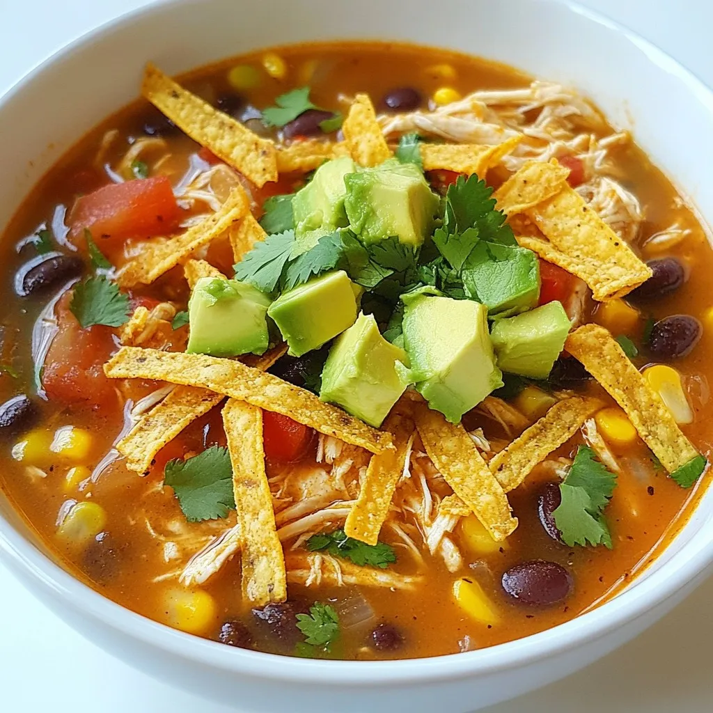 Garnishes are a fun way to make your soup special. Diced avocado adds creaminess and a fresh taste. You can use store-bought or homemade tortilla strips for crunch. They give your soup a classic touch. Shredded cheese melts nicely on top, adding richness. Fresh cilantro provides a vibrant finish and a burst of flavor. You can pick and choose your favorites to make the soup your own!
