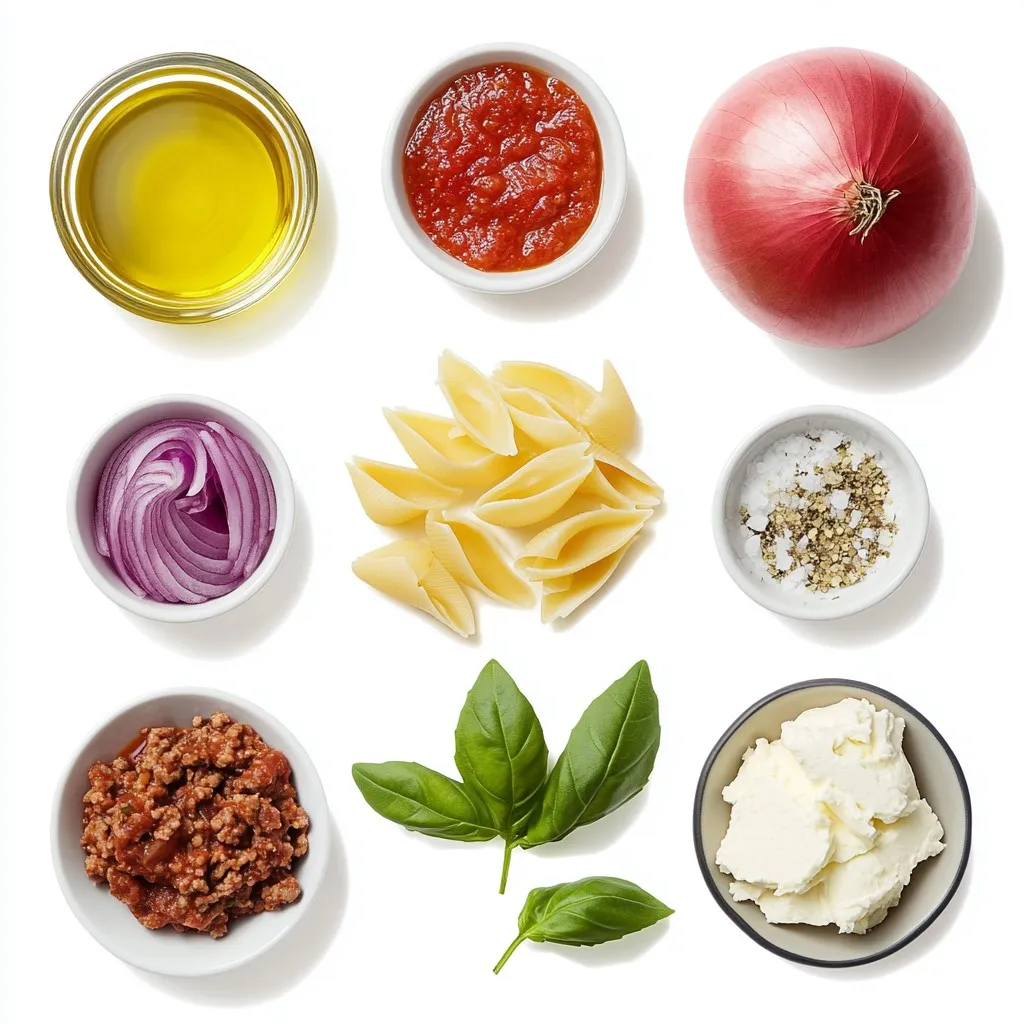 To start, I always use olive oil for a rich flavor. I finely chop one medium onion and mince three cloves of garlic. These form the base of the soup. Next, I choose one pound of ground beef or Italian sausage. This adds great taste and protein. For the pasta, I prefer small shells or elbow macaroni. They cook quickly and grab the sauce well.