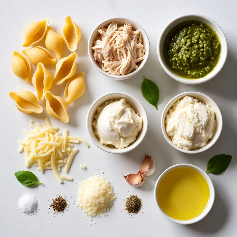 To create delicious Pesto Chicken Stuffed Shells, gather these simple ingredients: