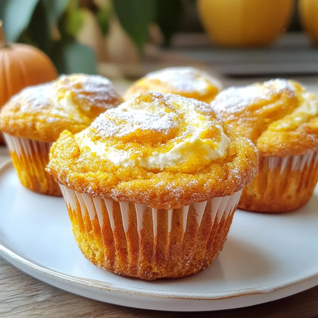 Delicious muffins filled with a creamy pumpkin and cream cheese mixture, perfect for fall.