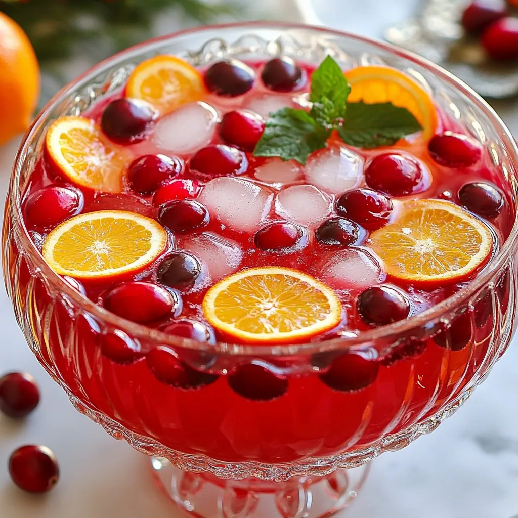 This punch is perfect for everyone! For a non-alcoholic version, simply skip the alcohol. The mix of cranberry juice and orange juice is sweet and tangy. You can also add ginger ale or lemon-lime soda for extra fizz. This makes it bubbly and fun for kids and adults alike. Garnish with fruit and mint to make it look festive. Everyone will love this refreshing drink!