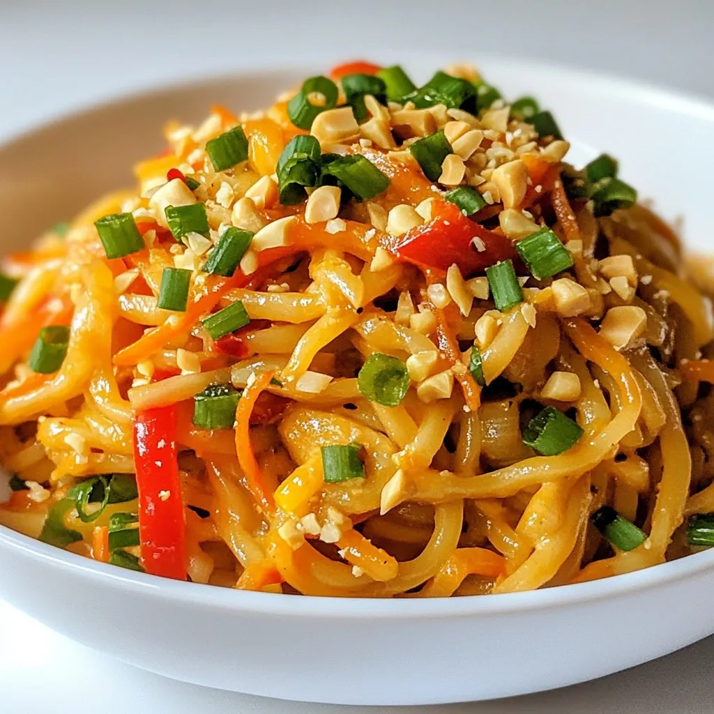 A flavorful and spicy noodle dish with creamy peanut sauce and fresh vegetables.