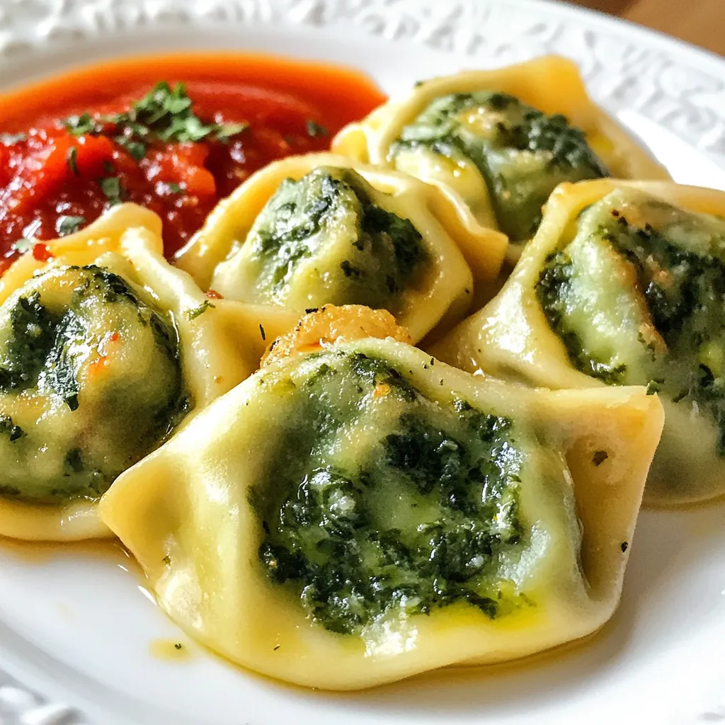 These ingredients bring a bright taste and rich texture to the dumplings. Fresh spinach adds color and nutrients, while ricotta gives a creamy bite.