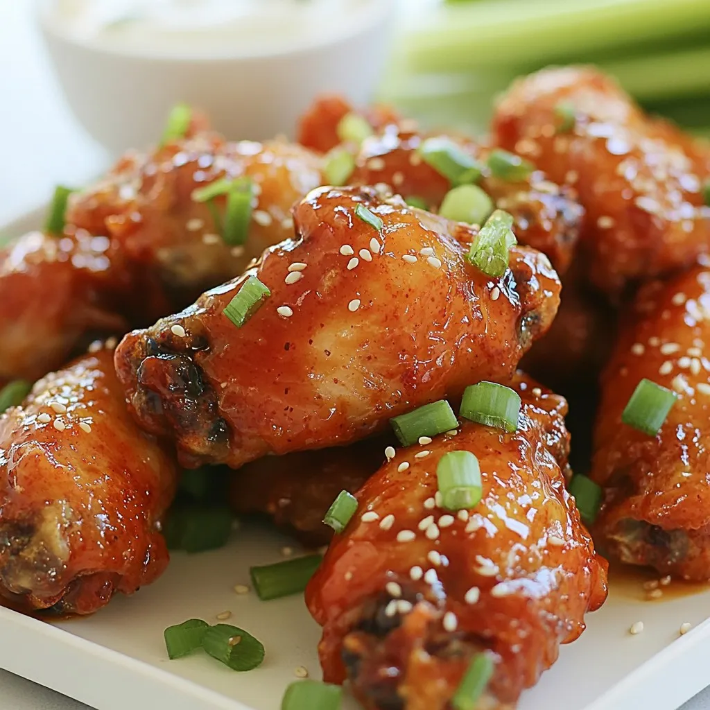 Spicy and sweet chicken wings coated in a flavorful glaze, perfect for any gathering.
