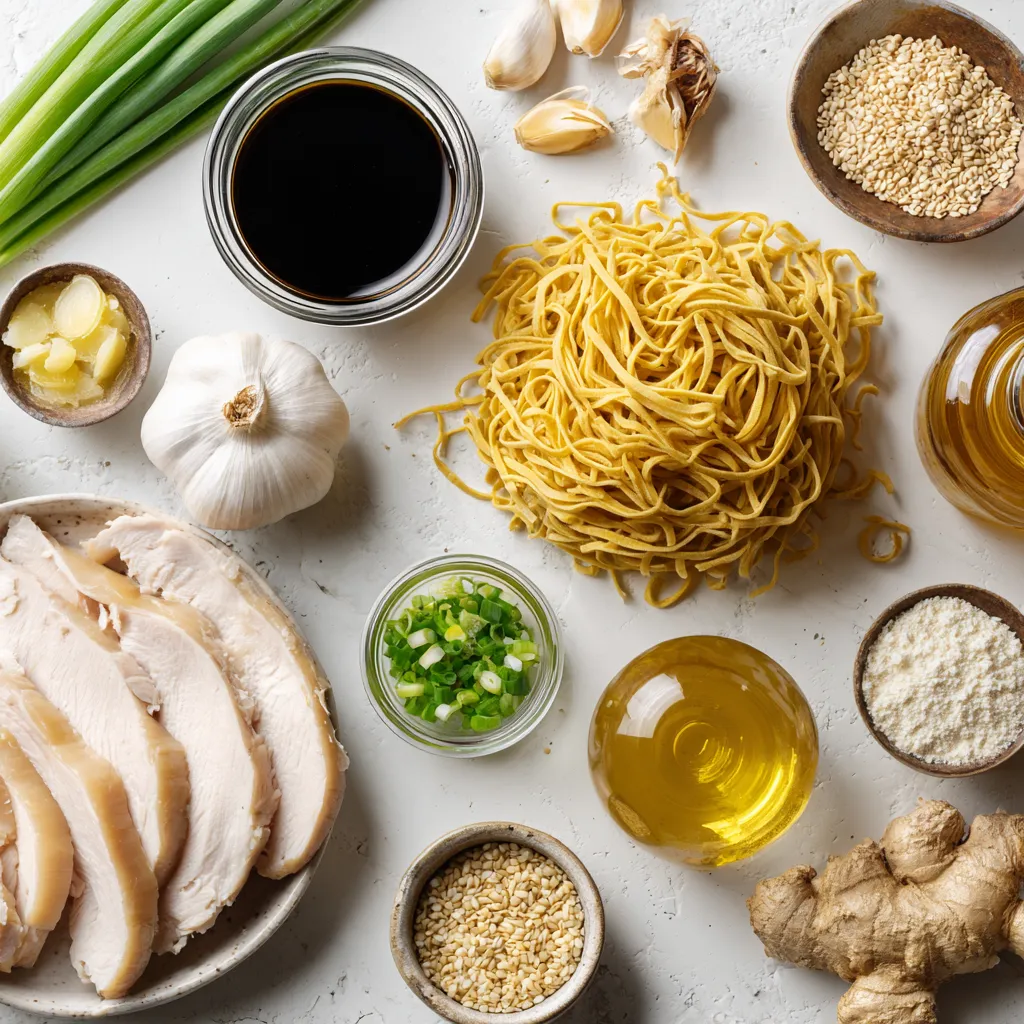 Each ingredient adds a key flavor. The chicken provides protein, while the egg noodles serve as a hearty base. Soy sauce and honey create a sticky, sweet sauce. Garlic and ginger bring warmth and depth. The sesame oil adds a nutty note, and green onions give a fresh crunch. Rice vinegar balances the flavors, and cornstarch can thicken the sauce if desired. Finally, sesame seeds enhance the dish’s visual appeal and add a slight crunch.