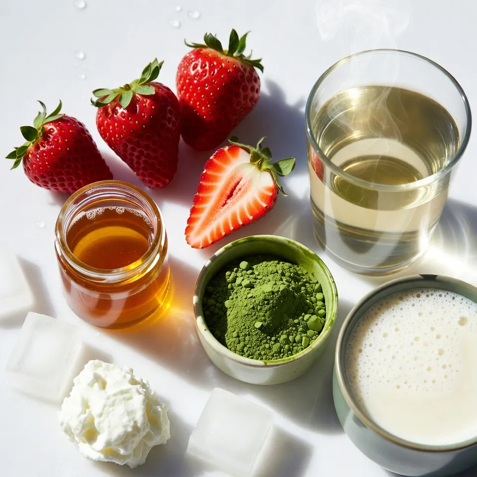 Keyword beverage, latte, matcha, refreshing, strawberry