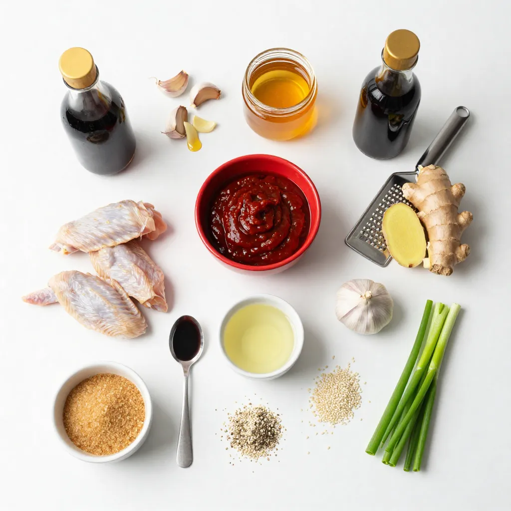 Spicy and sweet chicken wings marinated in a flavorful Korean chili paste sauce, baked to perfection.