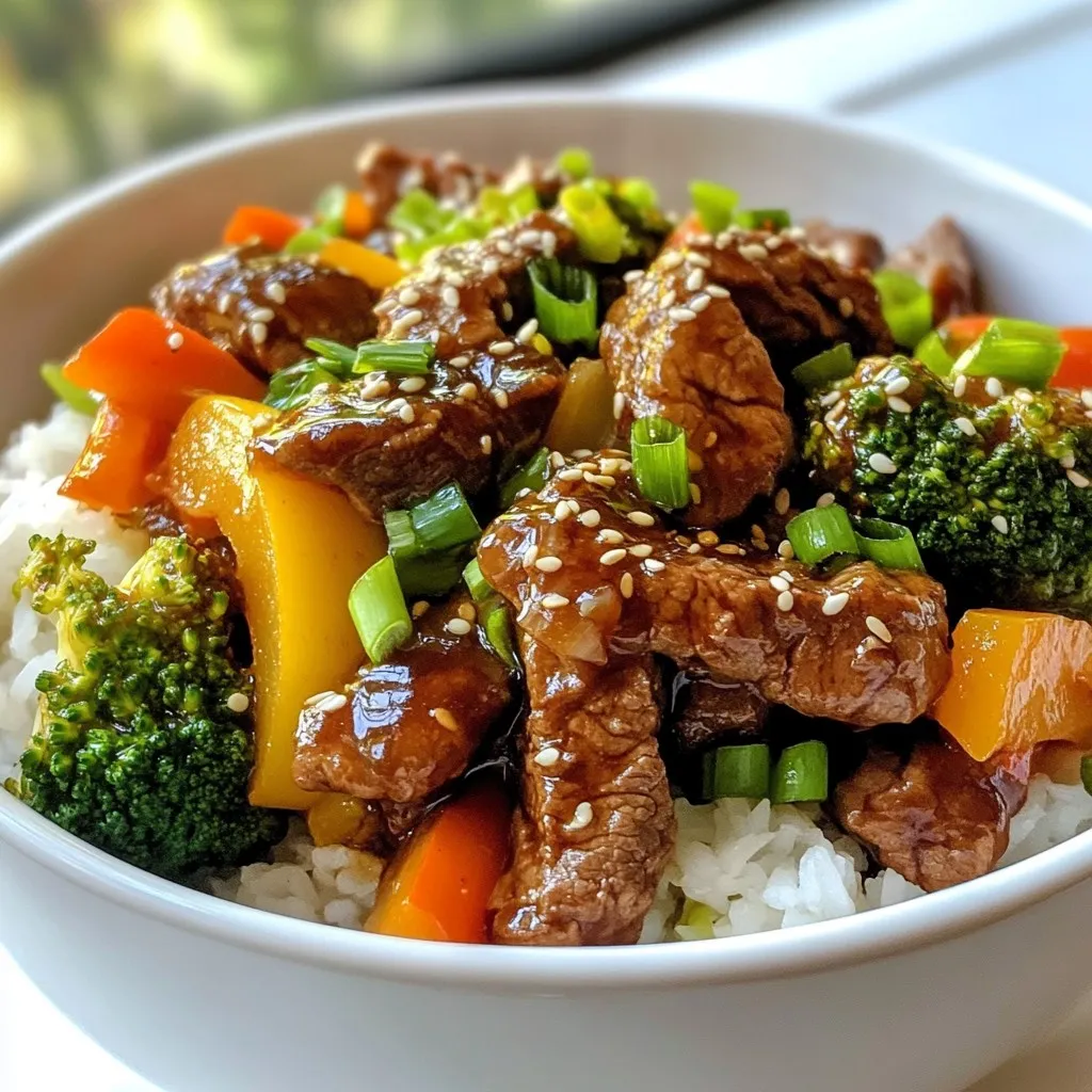 A quick and flavorful stir fry featuring tender beef sirloin and vibrant vegetables in a homemade teriyaki sauce.
